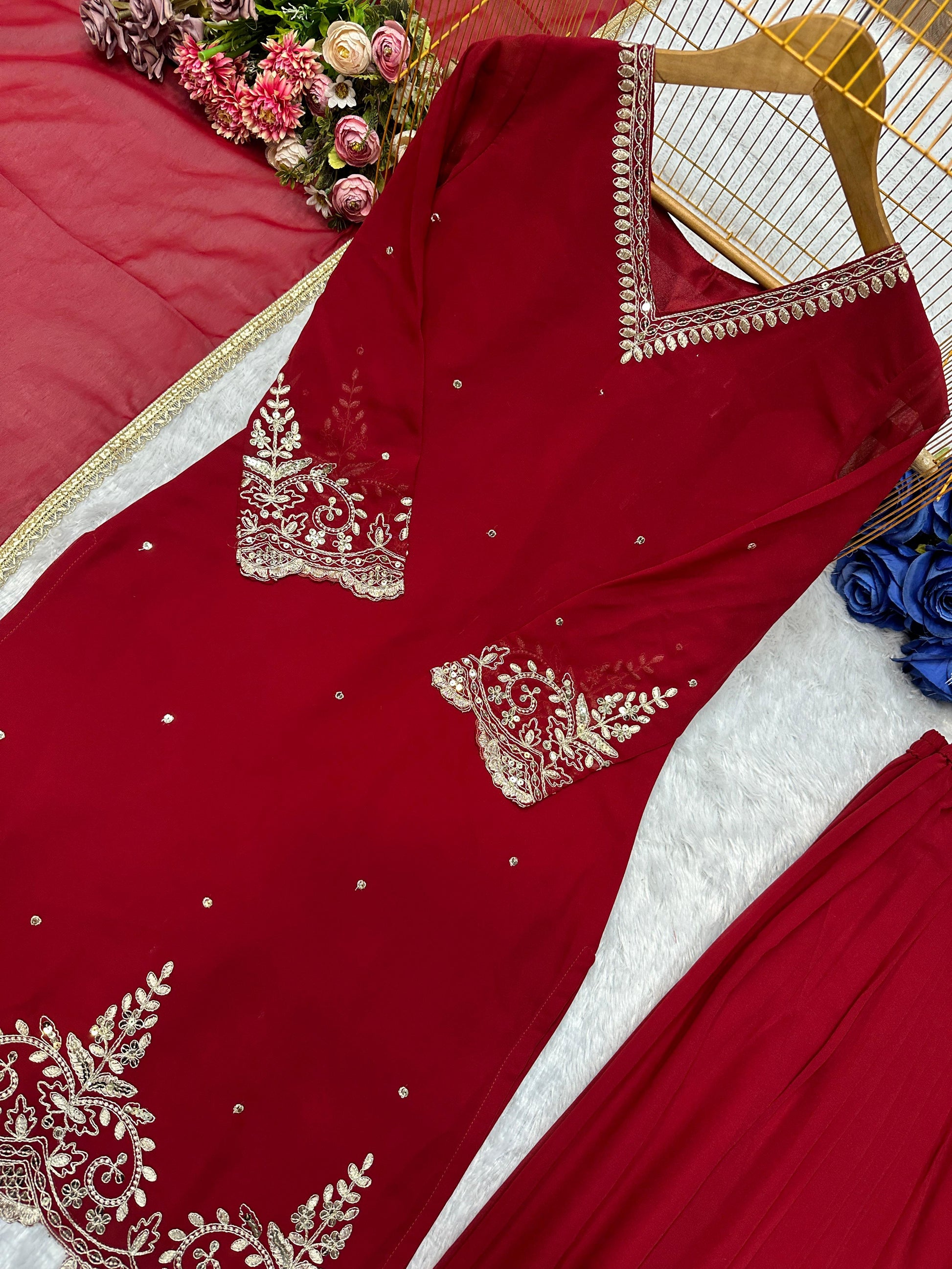 Mesmerising New Designer Plazzo Set With Fancy Dupatta And Embroidery Work ( MAS_VLM_274_Maroon )